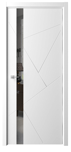 Дверь Геометрия-6 ширина 90 см Латте Эмаль Зеркало грей с замком кромка В цвет полотна в Новороссийске