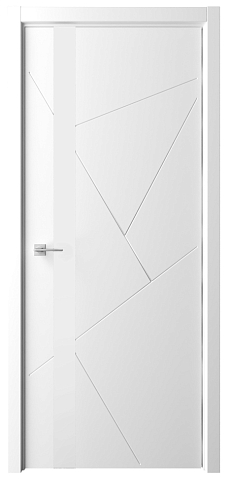 Дверь Геометрия-6 ширина 90 см Белый Эмаль Стекло белое с замком кромка В цвет полотна в Новороссийске