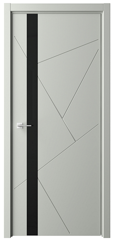 Дверь Геометрия-6 ширина 80 см Серый Эмаль Стекло черное с замком кромка В цвет полотна в Новороссийске
