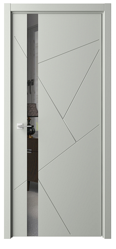 Дверь Геометрия-6 ширина 90 см Серый Эмаль Зеркало грей с замком кромка В цвет полотна в Новороссийске